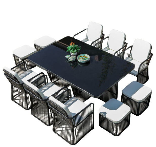 Restoran Dışarısı Sandalyeler ve Masa Alüminyum Çerçeve Su geçirmez Yastık Rattan Yapışkan Patio Bahçe Setleri